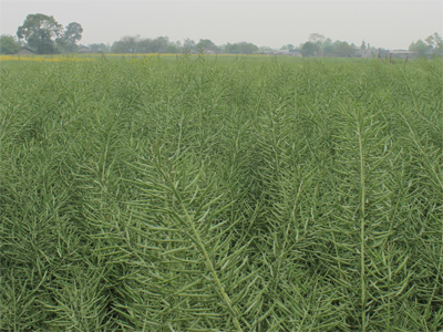 荃油8203是由荃銀高科種業股份有限公司最新選育的雜交油菜新品種。2010年通過安徽省農作物品種審定委員會審定(審定號2010001)。該品種屬半冬性雙低油菜,屬中早熟品種。株高178公分左右,一次分枝10.2個,單株有效角果470個以上,千粒重3.9克,芥酸含量0.53%、硫甘含量29.65umol/g、含油量41.7%。;該品種苗期生長勢較強,耐水耐肥,春季返青快,生長穩健,莖稈粗壯,抗倒伏,抗寒性與抗菌核病均較強,后期落花整齊,熟相好,高產穩產。