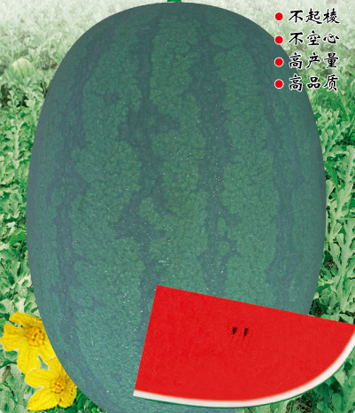 ■ 特征特性 :早熟種,雌花開放果實成熟28天左右。全生育期90天左右。植株長勢穩健,抗病抗逆性強,適應性廣,易坐果。果實橢圓形,果皮墨綠色底上覆暗條帶,果面光滑無棱帶蠟粉。瓤色深紅,瓤質酥脆,中心糖14%左右,口感好,風味佳。平均單果重8-10kg左右,大者20kg以上(特殊栽培),一般畝產6000公斤以上。皮厚1.0cm左右,果皮硬度強,耐儲運。