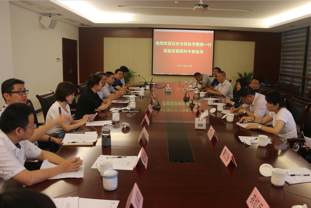 ??? 在調研考察座談會上,荃銀高科總經理張琴女士對百色市政協考察團一行到來表示熱烈歡迎,副總經理張從合先生就公司發展和科技創新情況等進行了匯報??疾靾F一行聽取匯報后,對荃銀高科取得的成績及創新做法給予肯定,并希望雙方兩地能夠進一步加強合作,實現共同發展。